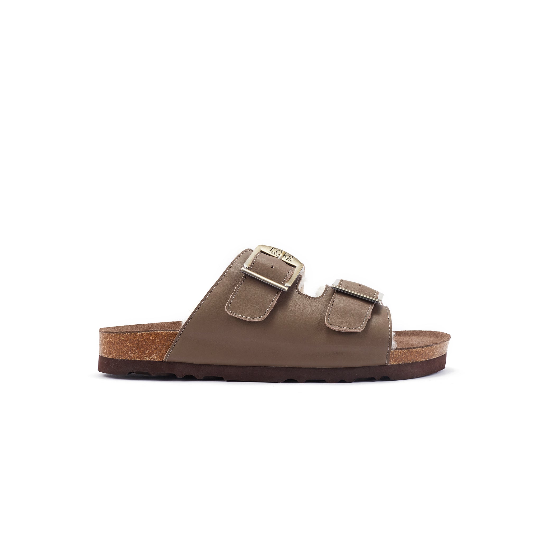 Classic two strap shoe with moulded comfort suede footbed, layered on soft cork for ultimate wearability. Adjustable, metal buckle up straps. Double face sheepskin lined with soft leather outer.