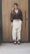 Ankle height, hiker style boot with chunky non slip winter sole. Double face sheepskin with shearling cuff, leather laces and metal buckle and strap detail. Suede upper.